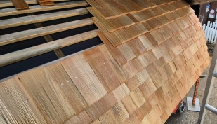 handgeschlagene Lärchenschindeln (weshalb wir keine Bitumenschindeln verwenden erfahren Sie hier) verleihen der Sauna nicht nur eine unvergleichliche